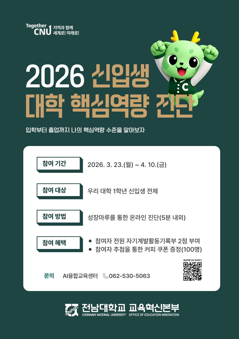 다. 진단 방법: [성장마루]→[통합진단]→[핵심역량진단](https://grow.jnu.ac.kr/ko/diag/essential)